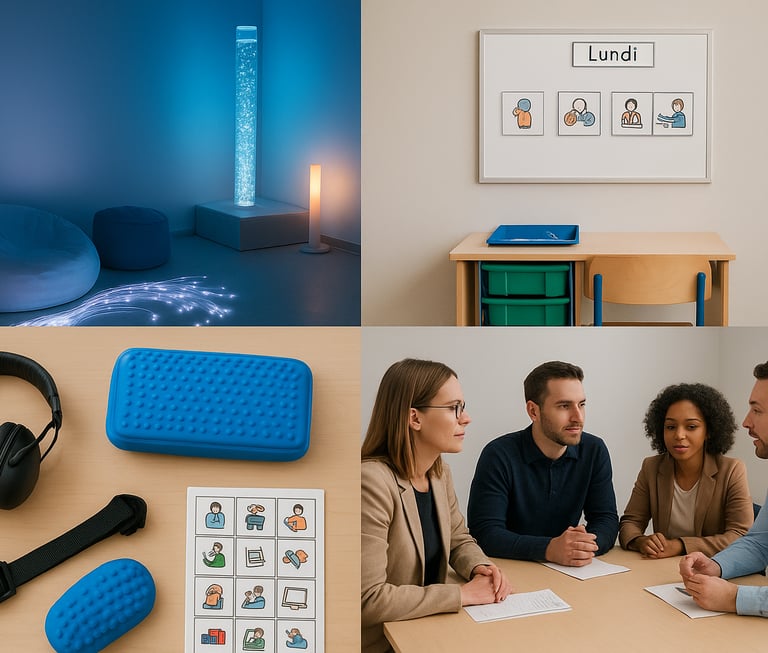Aménagement et optimisation d’espaces sensoriels, tels que les salles Snoezelen ou espaces de régulation ;